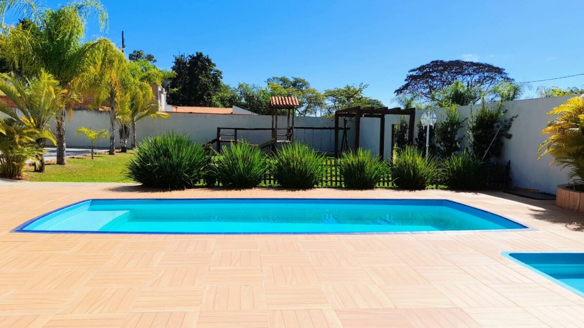 O local possui estrutura completa e muito bem cuidada, para lazer aos finais de semana e temporada, com piscina adulta, piscina infantil, playground, área de churrasco, podendo acomodar até 20 pessoas em camas nos 3 quartos com ar condicionado e ventiladores de teto), dois banheiros internos + dois externos, sala de tv e cozinha completa com 2 geladeiras, freezer, fogão e utensílios.