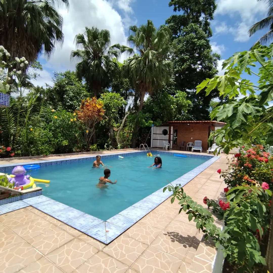 Piscina com cascata, campo de futebol, parquinho infantil e rio atrás da propriedade